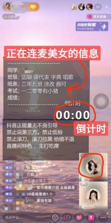 公屏上会显示此刻连麦美女的介绍信息,还有竞拍倒计时。