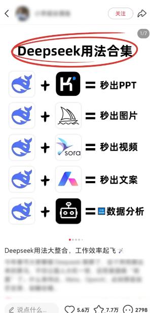标题、正文、话题标签全部嵌入“Deepseek + 场景词”,系统会自动把内容推给已搜索过相关词的用户,这群人自带需求,成交周期极短。