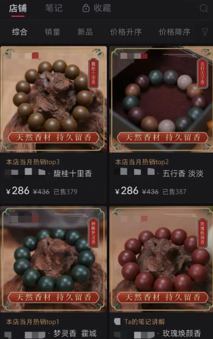 搜一下就能看到,不少店铺专做“中药手串”,客单价 200——300 元,单款月销几百串,轻松几十万到账。