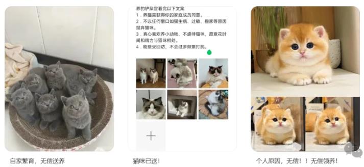 抖音、小红书、快手同步发图文/短视频:标题清一色“免费送人见人爱的英短/柯基,不花一分钱!”配图全是萌到犯规的奶猫奶狗。